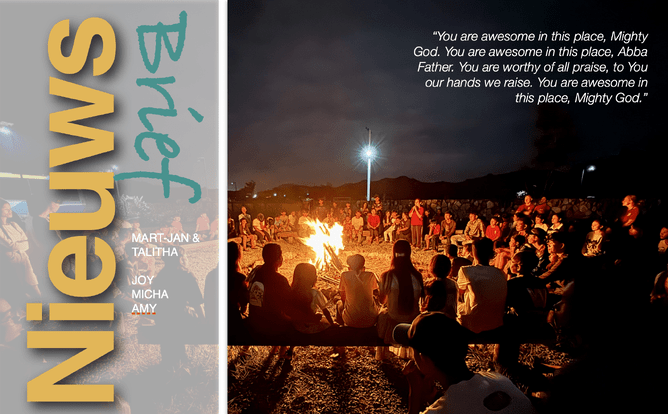 Ken je het lied op de foto? Tijdens onze tijd op Shalom Valley zongen we het een aantal keer: You are awesome in this place, Mighty God! - Machtige God, U bent geweldig op deze plek! Dat zagen we ook aan de gezichten van de mensen om ons heen (en jullie zien het op de fotoβs). Dat hoorden we in de getuigenissen van de Alongsiders die naar kamp kwamen. En dat voelden we als we rondliepen op het terrein en Gods schoonheid overal zagen. βGod - You are awesome!β Wat zijn we dankbaar dat we dit onverwacht mee konden maken en onderdeel mochten zijn van momenten van ontmoeting, vieren, herdenken. Het raakt ons te zien hoe de teams gegroeid zijn en hoe ze zorg dragen voor elkaar en het werk dat ze mogen doen.